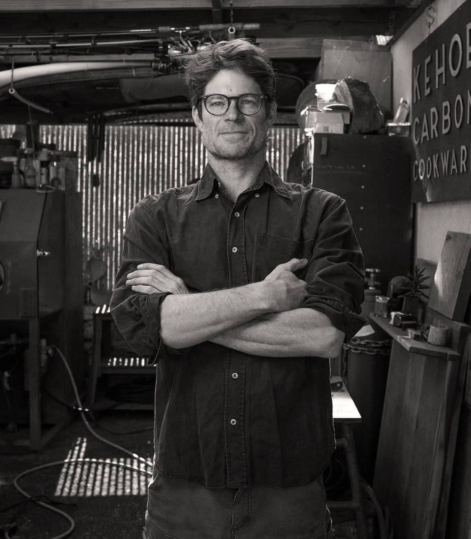Dennis and Kasey Kehoe are the creative and metal-bending forces behind their California-based Kehoe Carbon Cookware. A family operation in which Dennis, long-time artist blacksmith and metalworker, and Kasey, veteran of the construction and structural steel areas of metalwork, perform all forging and shaping of the carbon steel pans and flexible spatulas by hand. Dennis, beginning his metalwork journey in 2001 with a bronze casting course at a local college, went on to cast and sculpt bronze for several years until he was introduced to forging in 2008. Kasey, with her journey traced back to the moment she asked her father to show her how to use his welding machine, met Dennis in 2001, and the two have been at it since. Together they have owned and operated a custom shop specializing in hand-forged architectural ironwork and sculpture for a number of years. It was in 2018 when their new culinary-focused adventure began, first as a labor of love: Dennis made Kasey a pan as a gift, his debut piece of cookware, and, having prepared several meals in it and falling in love with the quality and function of such a high-quality cooking tool, decided to make a few more. Quickly selling the first batch, Kehoe Carbon Cookware was soon born, with Dennis and Kasey together designing a collection of skillets, fry pans, saucers, and woks, creating the tooling, and going into production, and we're honored to now offer these beautiful, high-performance culinary objects here on Eatingtools.