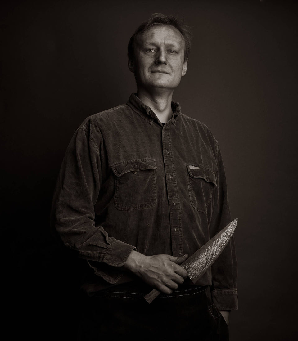 Originally from Poland, bladesmith and metal artist Leszek Sikon has lived the better part of two decades in England, from London, to Hereford, to Suffolk where he crafts sole-authorship chef knives for home and professional chefs alike. Yearning for a change from a successful career in retail, Leszek began a blacksmithing course at a local arts college. There was no looking back. He went on to receive a BA in Artist Blacksmithing. Training, evolving, and refining his craft ever since, the history and traditional methods behind shaping metal with fire, hammer, and anvil inspire his work today. From house-made blade formulas to unique damascus patterns and the integral bolsters of function-forward kitchen knives, Leszek’s work is unpretentious, unique, and made for daily use in the kitchen. Over the years Leszek has been awarded with various accolades, from The Goldsmith Centre, to the Craft Council Hothouse, to the honor of QEST Scholar from the Queen Elizabeth Scholarship Trust.