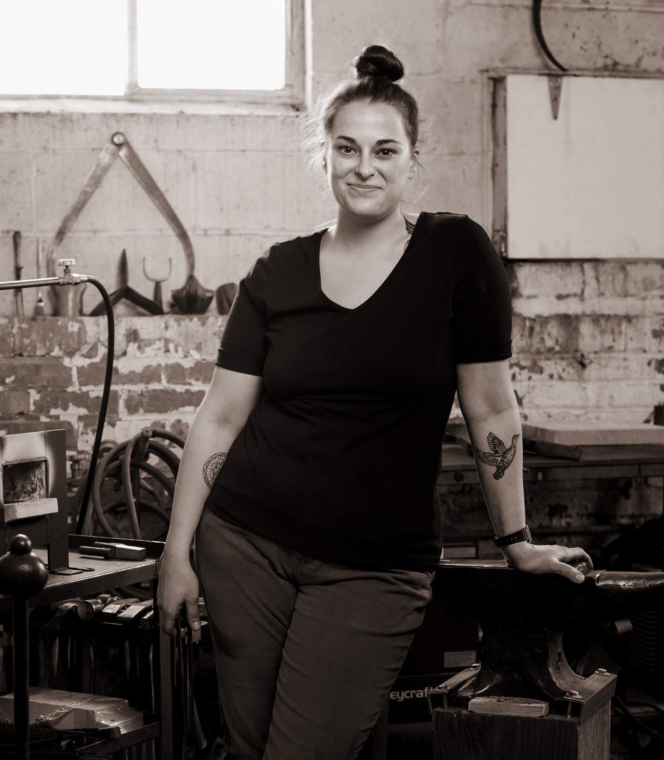 Memories of her grandparent’s home and the objects that filled it has provided ongoing inspiration to Rachel’s design aesthetic, complementing her belief that “Metalwork, in general, should aim to be somewhat timeless.” Crafting visually appealing, functional, everyday objects at her studio in Philadelphia where she now lives and works is Rachel’s primary endeavor. The wares we offer from this talented artist represent the culmination of skills to which she has dedicated herself and her career. From blacksmithing, to machining, fabrication, and enameling, each requiring years to master, this special set of expertise can be seen in full force in the beautiful objects Rachel makes for our collection. Serving spoons and crab hammers alike, Rachel’s purposeful, thoughtful approach to everything she creates is without question. Once the student, today Rachel is invited back to the Penland School of Craft to teach the next generation of doers, and we’re honored to present her wares to the world.