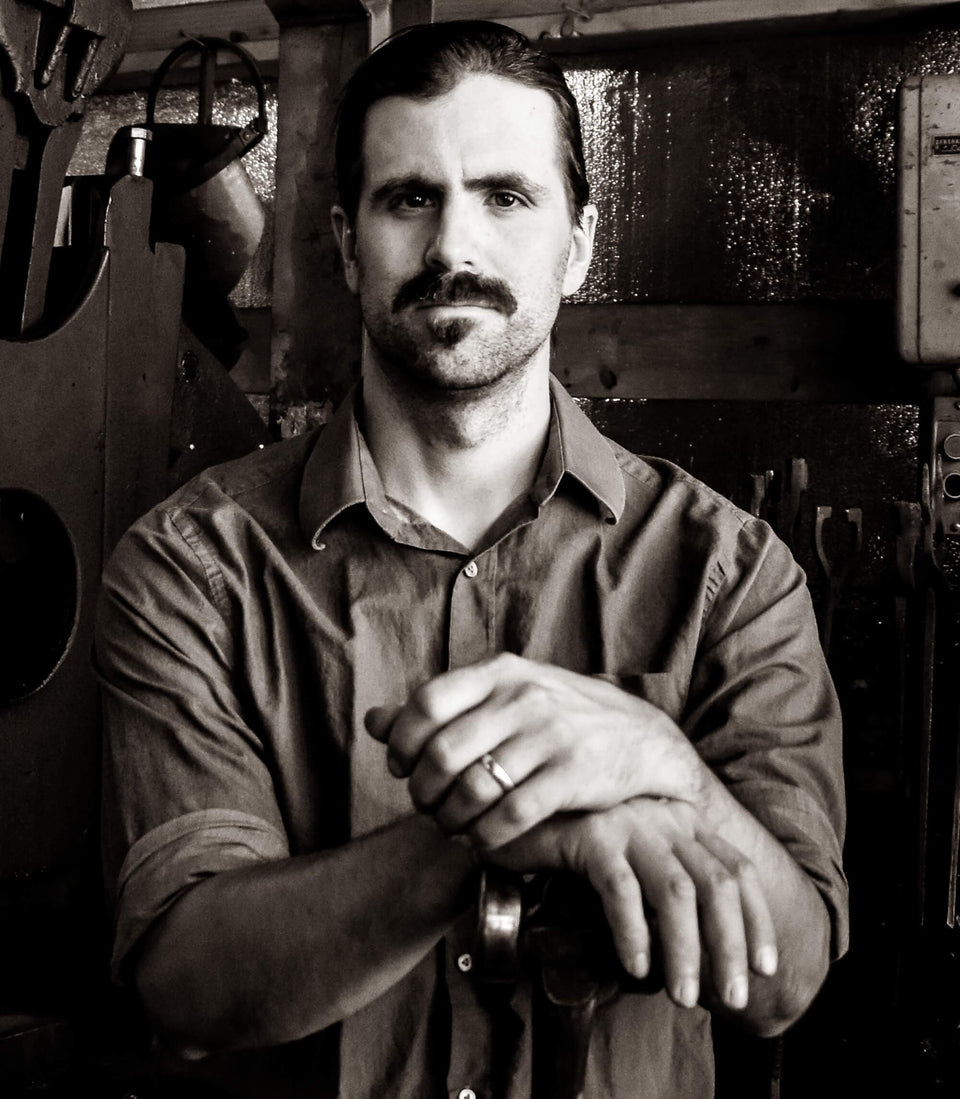 A self-taught blacksmith who began shaping metal with a charcoal forge and hand tools at the age of twenty, Salem Straub of Promethean Knives has evolved in to a supremely talented and creative artisan with a keen focus on bladesmithing and the creation of custom chef knives. Working from his one-man studio in Tonasket, Washington in the US Northwest, Salem creates functional art in the form of high-performance kitchen cutlery one knife at a time, making his own damascus, forging integral bolsters and designing unique and stunning handles among his many talents. A History Channel's Forged in Fire winner, Salem's varied metalworking experience and attention to detail produce extraordinary cutting tools in which 'sole authorship' is an important attribute of each finished piece, providing opportunity for attention to the subtlest details, frequently resulting in objects that blend the line between art and function.