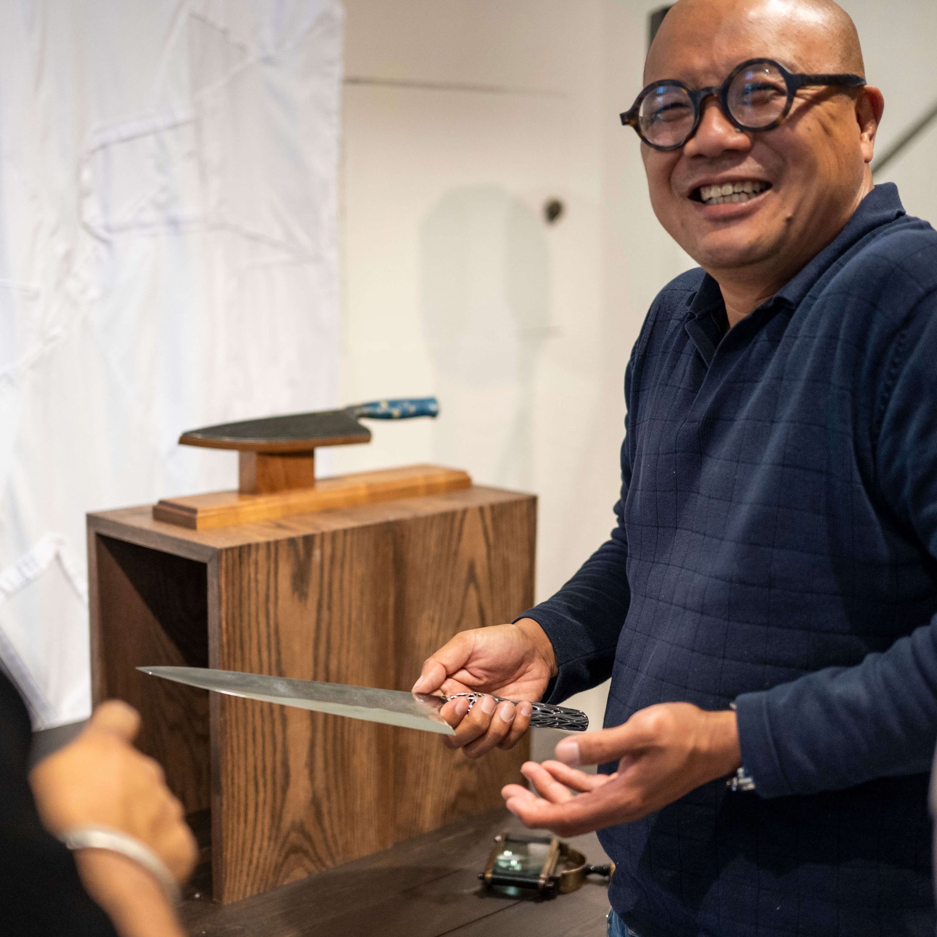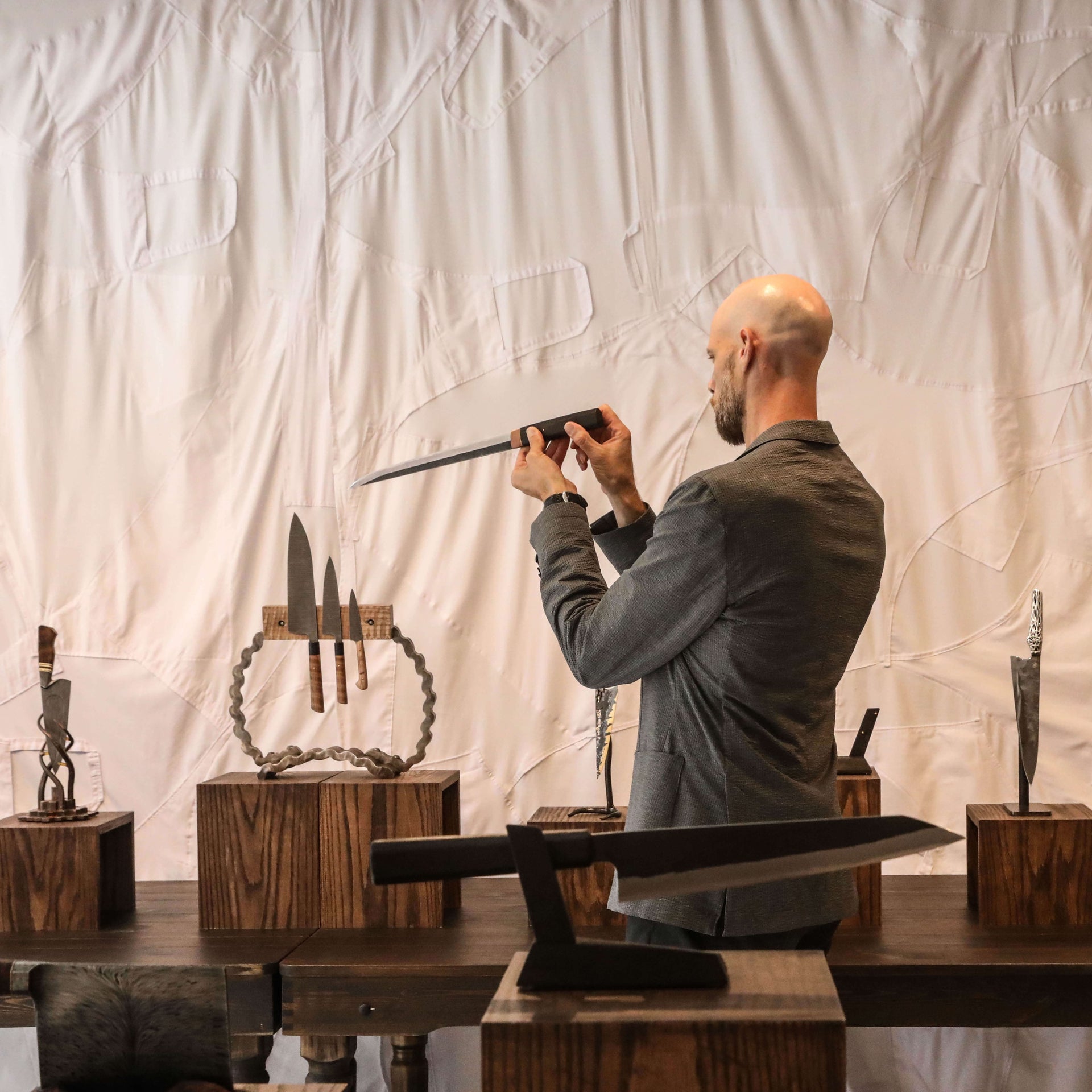 The Art of Cutlery, a first-of-its-kind group exhibition featuring modern renditions of humanity's oldest tool, the culinary knife, took place from August 29 to September 7, 2024, in Tribeca, NYC. From the diverse group of guests who attended to the artists' whose world-class work represented five continents, the feedback was overwhelming and inspiring. We're excited to look toward the next iteration. Below are photos, from the opening reception, to the artist's talk, to the extraordinary art itself. Thank you to everyone who helped make this special event such a success.