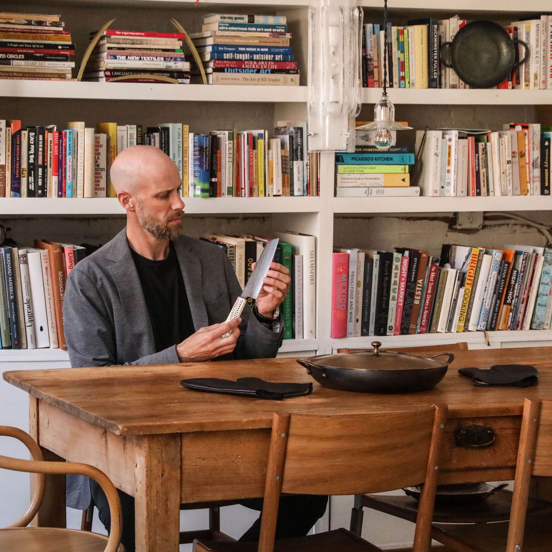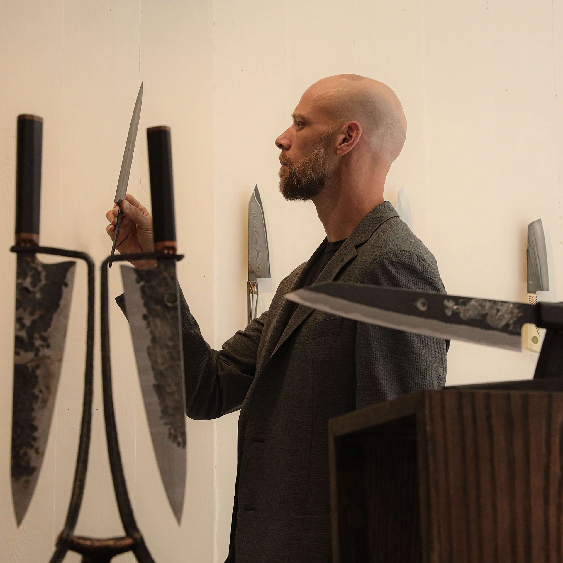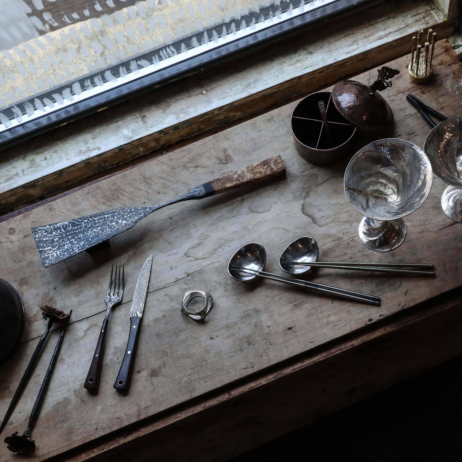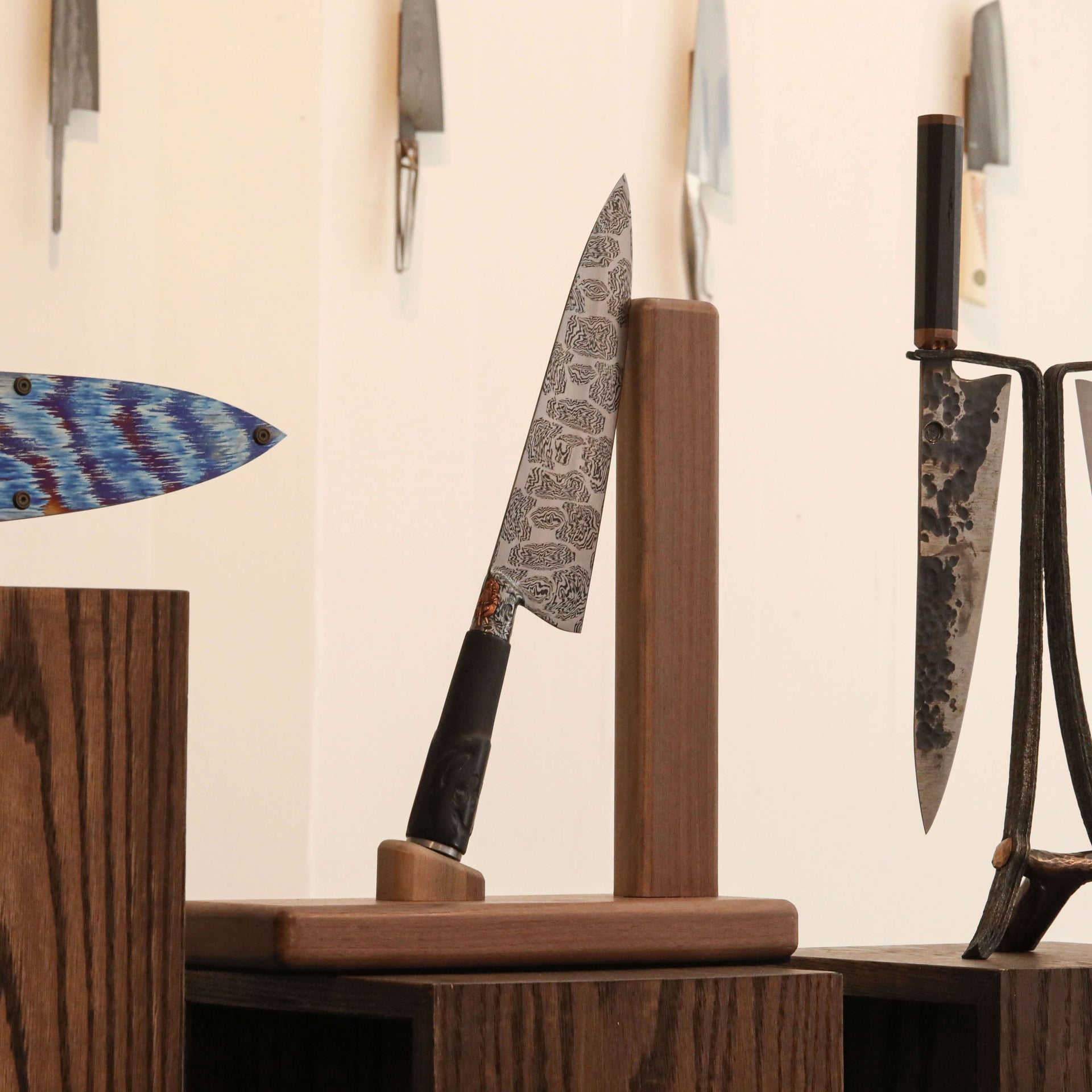 Knives are humanity's oldest tool, integral to our very survival and evolution as a species. They allow us to procure sustenance, to nourish ourselves and our loved ones, enabling us to break bread with friends and strangers alike, and to grow as a civilization. These are the tools which feed us, the most intimate tools in our lives. Their importance to our way of life can not be overstated, just as the innovation, talent, and contribution to society by those skilled artisans who craft them should not be overlooked. The contemporary renditions of this most ancient tool combine function and art like few objects can, and through the works of these 24+ artists, we think you'll agree that a chef's knife can be not just tool and fine art at once, but a bridge between food, art, design, and history.